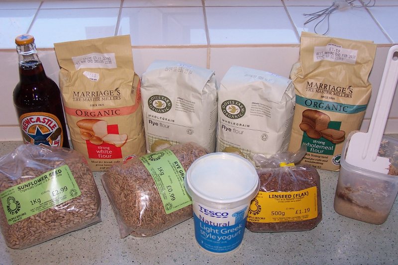 | If you haven't got any sour dough to start off with you can boot strap one from buttermilk, youghurt, flour and a tiny bit of yeast. Dissolve the yeast in the buttermilk first. Then add youghurt and mix sufficient flour into it so as to get a thick porridge-like dough. Then treat the sour dough as in the previous paragraph and it should be ready for baking after 2-3 days. |